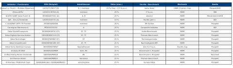 Hier eine Liste mit Publikumsfonds, die Performance Fees berechnen – kein Anspruch auf Vollständigkeit!: