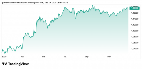 Als Weltportfolio – Anleger, der in € denkt, sind diese neuen Höchststände jedoch nur abgeschwächt in den Depots angekommen. Denn die Währungsentwicklung schwächt das Ergebnis in diesem Kalenderjahr doch deutlich ab. Denn da in einem Weltportfolio Aktieninvestments in USD eine größere Rolle spielen, führt die Wechselkursentwicklung zwischen € und USD des Jahres 2025 zu reduzierten Gewinnen. Der € gewann gegenüber dem USD über 13%.